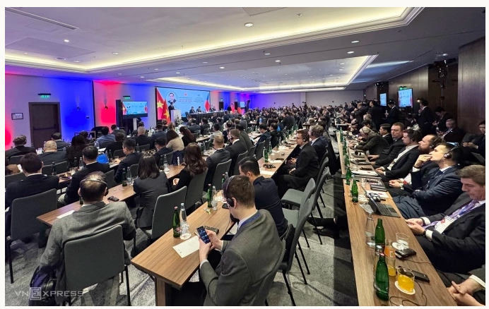 Ngày 20/1, Thủ tướng Phạm Minh Chính đã tham dự Diễn đàn doanh nghiệp Việt Nam - Cộng hòa Czech, tại khách sạn trung tâm thủ đô Prague. 30 phút trước khi sự kiện bắt đầu, hội trường đã chật kín khách với hơn 250 đại biểu từ các cơ quan Czech và doanh nghiệp hai nước thuộc nhiều lĩnh vực như công nghiệp, tài chính, sản xuất, vận tải, thực phẩm...